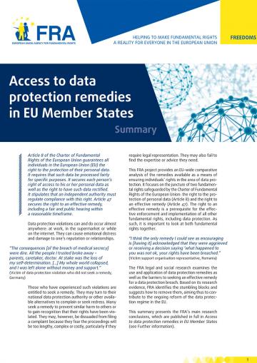 These ad hoc information reports constitute the background information drawn on by the FRA in order to compile its legal comparative analysis for the report on ‘Access to Data Protection Remedies in EU Member States’. These reports were prepared under contract by the FRA’s research network, FRANET, upon an ad hoc information request. They consist of an overview of the existing redress mechanisms in the area of data protection in the 28 EU Member States.